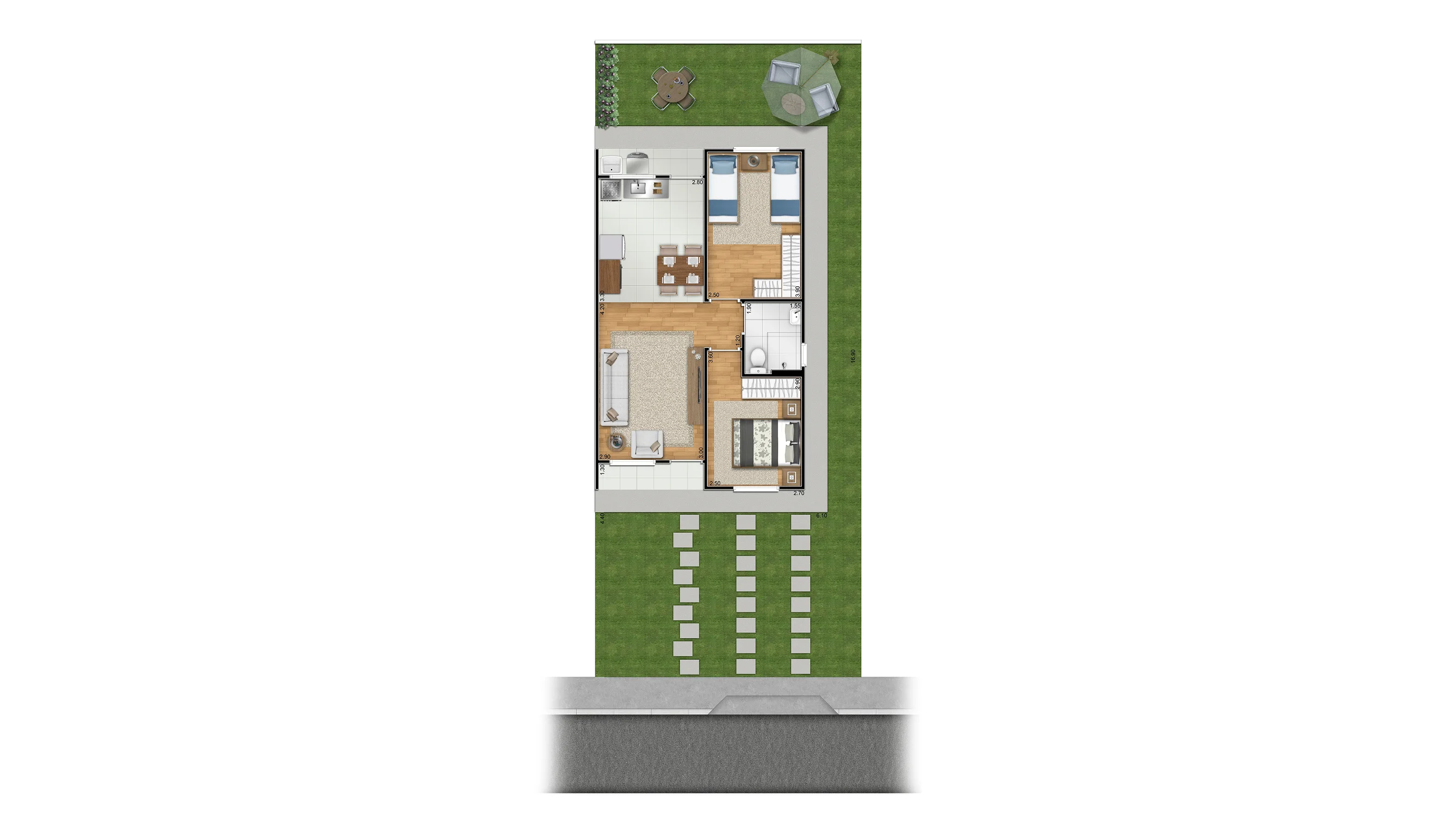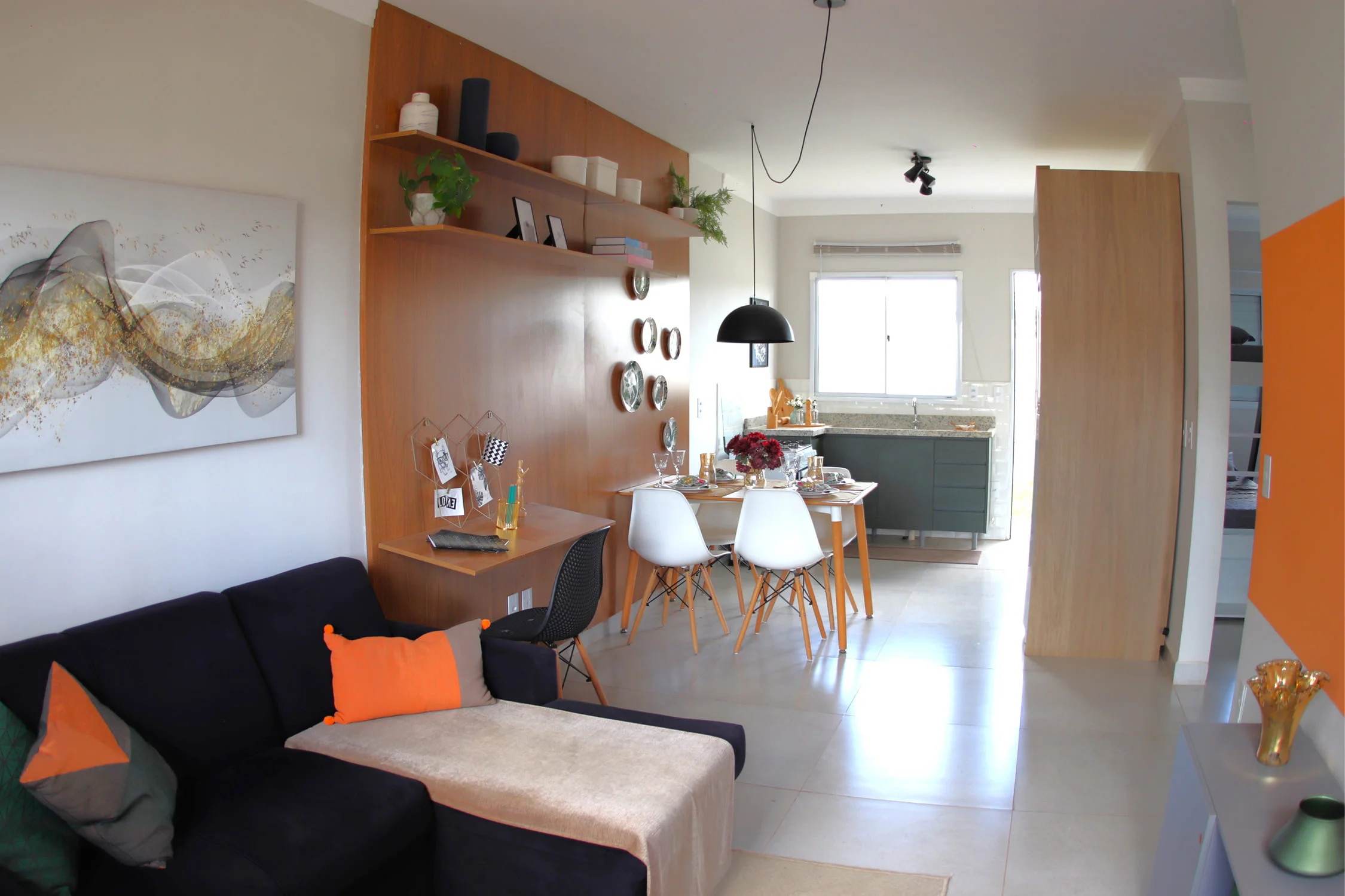 com 2 dormitórios, sala com cozinha integrada, quintal e vaga de garagem.